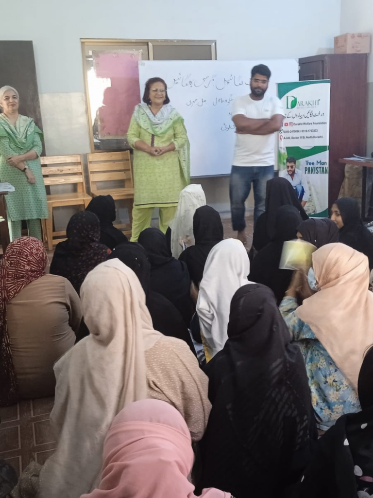 Amna Shamima Foundation hosted a insightful session on the importance of tree plantation in combating climate change. This initiative, in collaboration with Urban Resource Centre and Tree Man Pakistan, brought together a large group of community women.