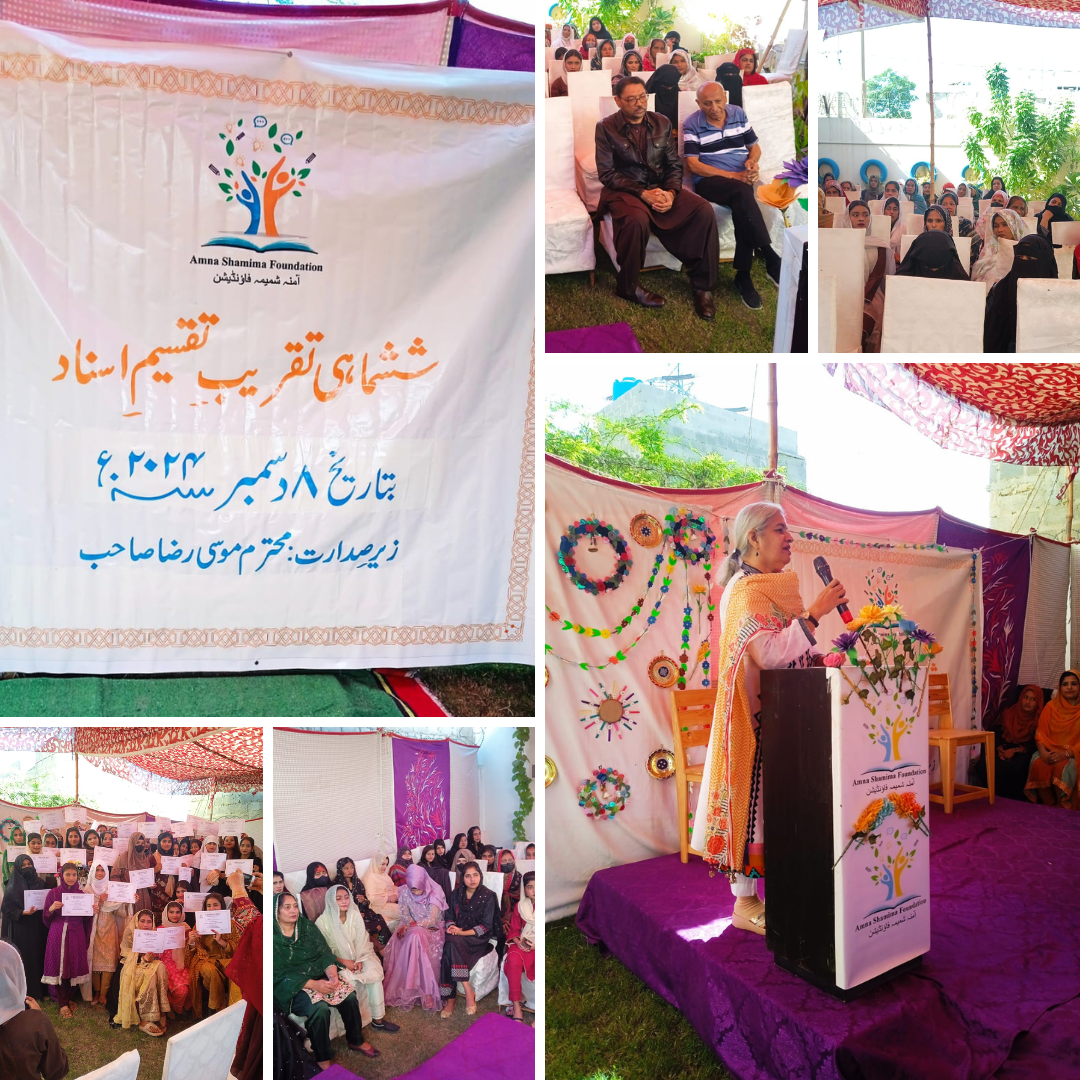 Glimpses from the certificate distribution ceremony of third batch students at Amna Shamima Foundation .